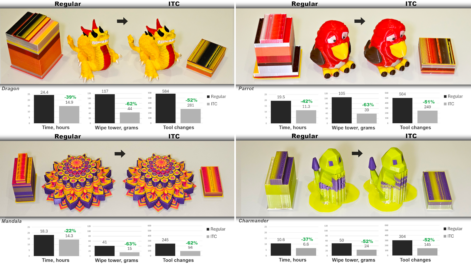 Petsiuk, A., Bloch, B., Vogt, D., Debora, M., & Pearce, J. M. (2024). Tool change reduction for multicolor fused filament fabrication through interlayer tool clustering implemented in PrusaSlicer. Rapid Prototyping Journal.